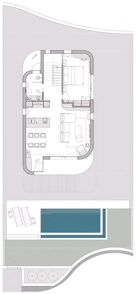 Ideal for those seeking an exclusive accommodation with full comfort and privacy. Surrounded by a private outdoor space that wraps around the entire building, it offers generous areas for outdoor enjoyment. Differing from typology A, access to the outdoor area is located at the rear of the property, which includes parking within the premises. The infinity pool, positioned in front of the residence, provides a perfect spot for relaxation, complemented by a solarium and a green area that invite unique outdoor experiences.